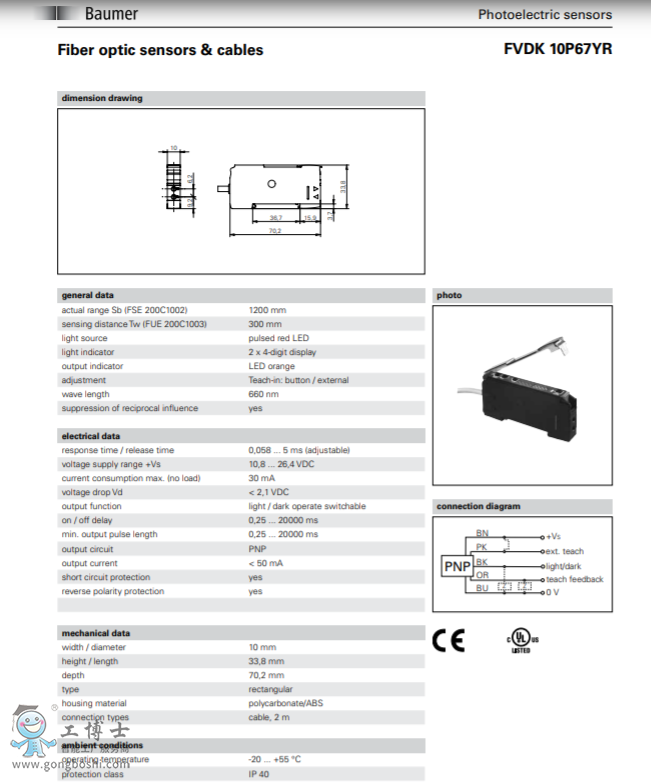 Baumer 堡盟FVDK 12P6410/S35 A光纖放大器線纜可開(kāi)增票