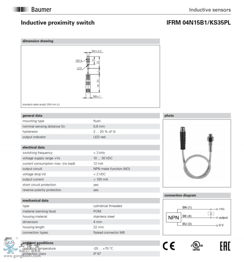 IFRM 04N15B1/KS35PL電感式接近開關-Baumer堡盟接近開關傳感器現貨可開增票