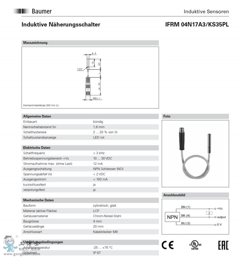 IFRM 06N1701/KS35L 引線接頭 M8 NPN 常開 (NO) 30 mm LED 紅色