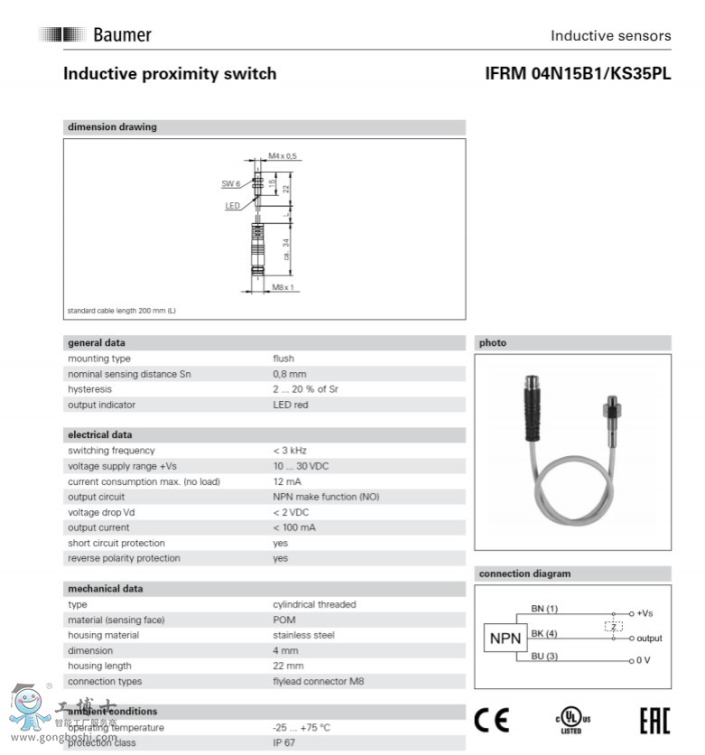 Baumer/堡盟IFRM 04P15B1/KS35PL電感式接近開關傳感器
