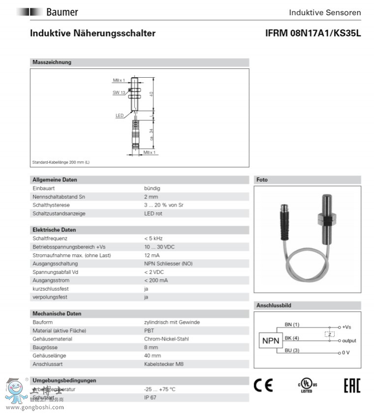 IFRM 08P37A1/KS35L堡盟傳感器Baumer電感式接近開關