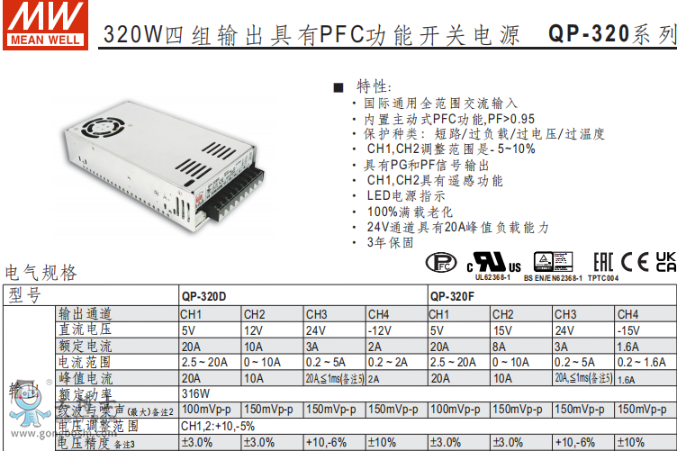 明緯開關(guān)電源Qp-320D功能開關(guān)電源現(xiàn)貨