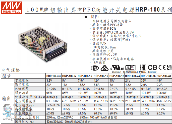 明緯PFC-100-7.5V功能開(kāi)關(guān)電源現(xiàn)貨