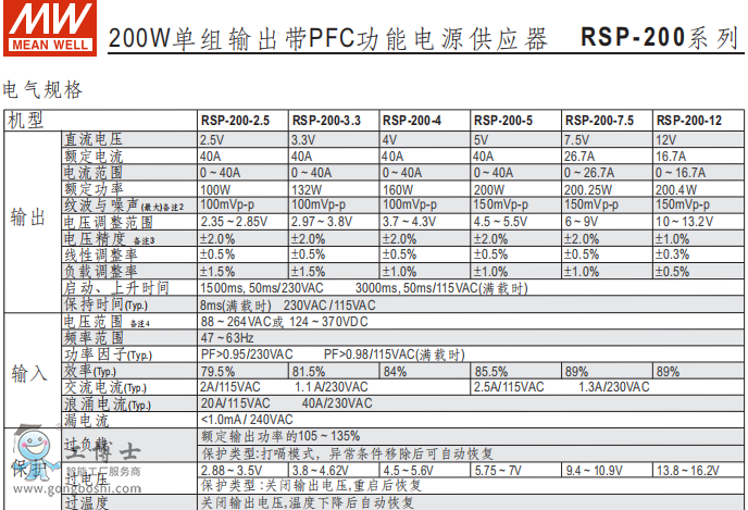 明緯RSP-200-12V功能開關電源現貨