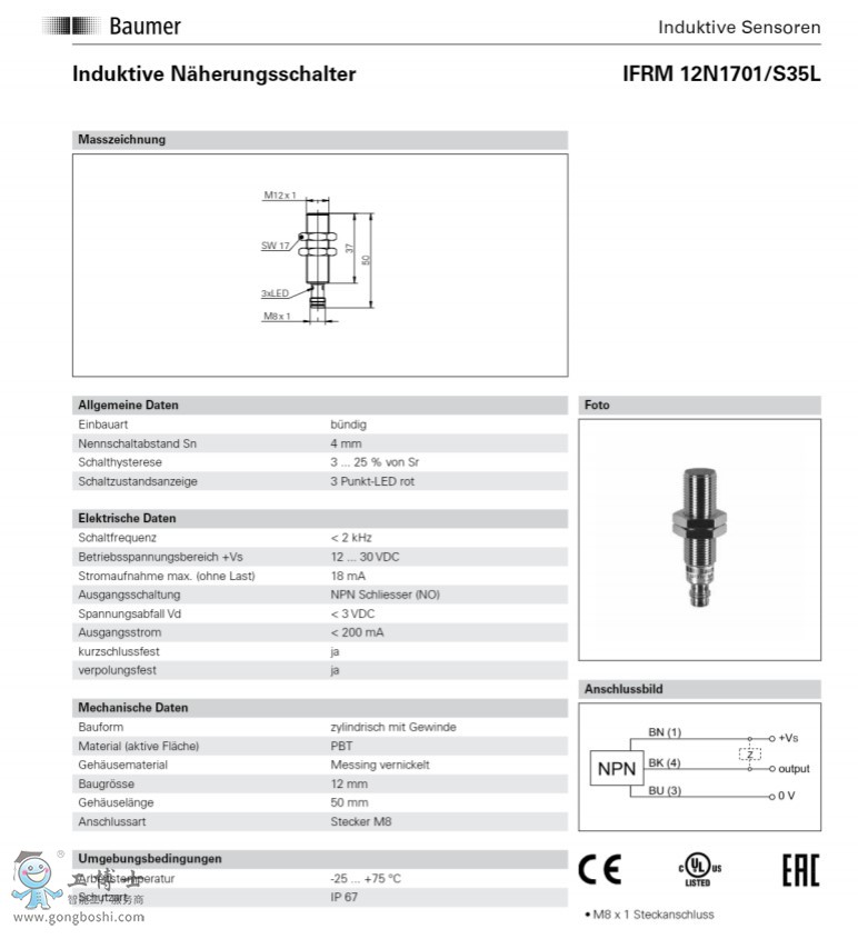 Baumer 堡盟IFRM 12N1701/S35L開關傳感器電感式接近開關可開增票