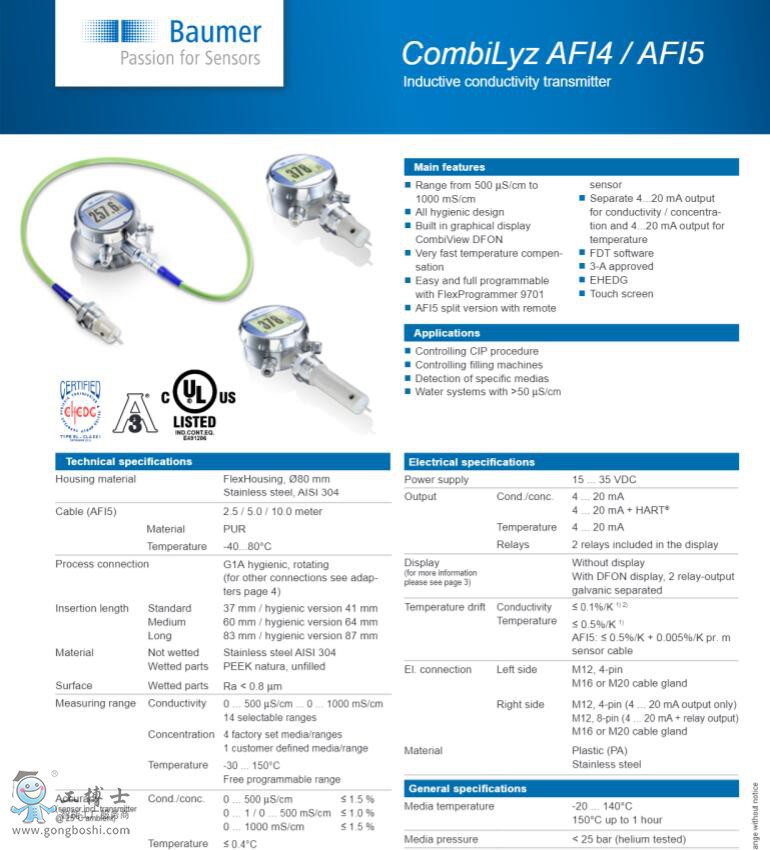 現貨供應 瑞士堡盟Baumer電導率AFI4/AFI5系列AF14-5630.4002.01可開增票