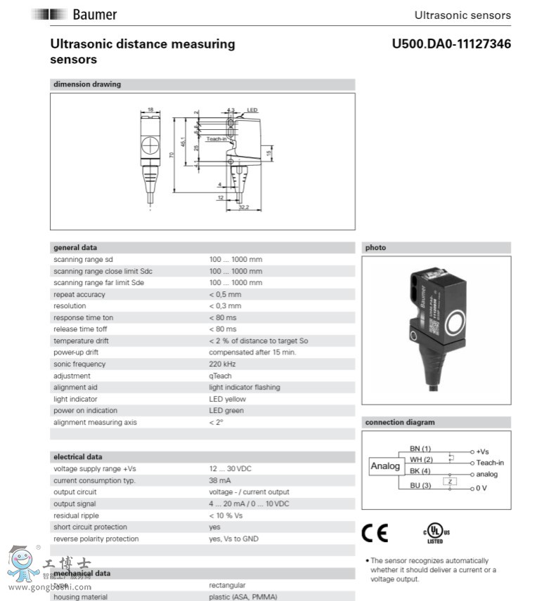 Baumer 堡盟U500.DA0-11127346超聲波測距傳感器可開增票現貨