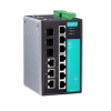 EDS-P510 系列千兆網管型冗余以太網交換機配備 4 個 10/100BaseT(X) 802.3af (PoE) 以太網端口和 3 個 Combo 千兆以太網端口。EDS-P510 工業交換機每個 PoE 端口供電高達 15.4 W 功率,可在無法使用或因成本考量而無法在本地提供交流電源的情況下,為連接的設備(例如:監控攝像頭、無線接入點和 IP 電話)供電。EDS-P510 交換機功能多樣,其 SFP 光纖端口可支持從設備到控制中心高達 80 km 的數據傳輸距離,并且提供高水平的抗電磁干擾能力。這款以太網交換機支持先進的管理和安全功能。 EDS-P510 系列專為安全自動化應用而設計,例如:IP 監控和門禁系統,這些應用均可受益于可擴展的骨干通信網絡和 PoE。