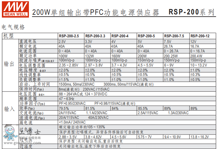 明緯開關電源RSP-200-5V系列開關電源大量現貨