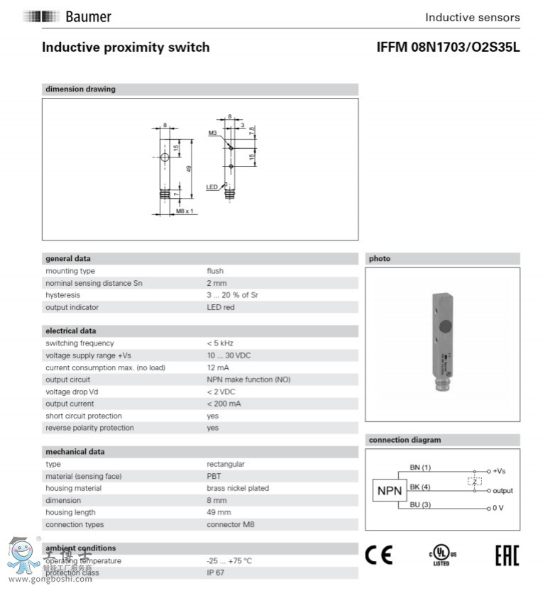 Baumer/堡盟IFFM 08N3703/O2S35L電感式接近開關傳感器