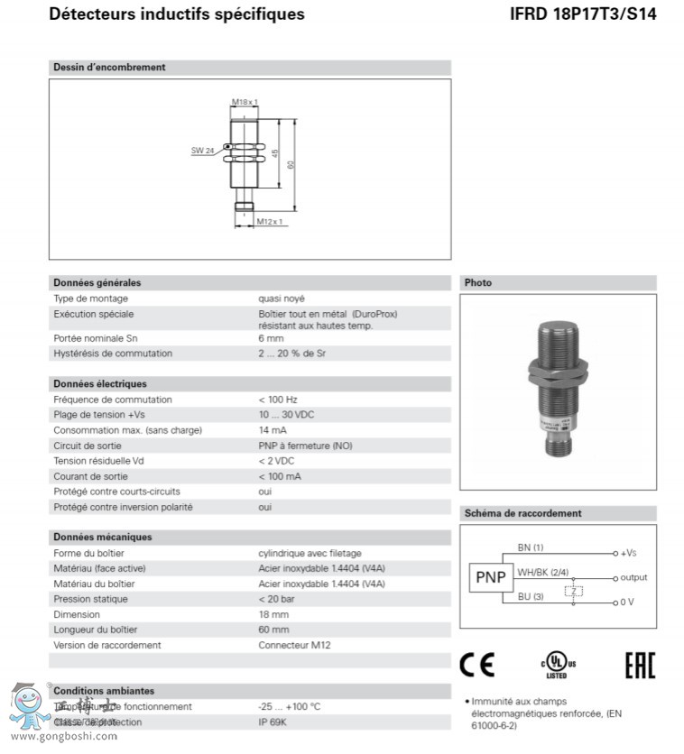 Baumer堡盟電感式接近開關傳感器IFRM 12N1501/S14L