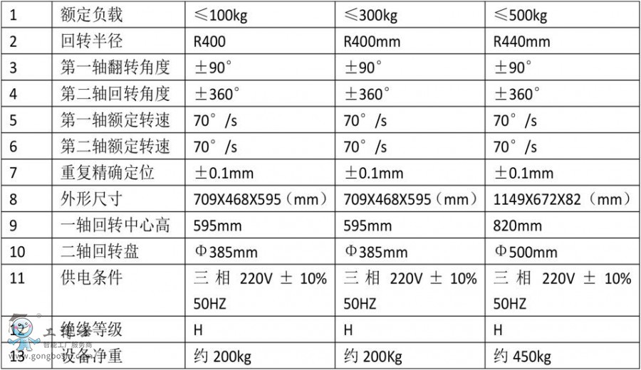 工博士焊接版變位機 型號:U型-3(中型傾斜翻轉雙軸) 參數資料。