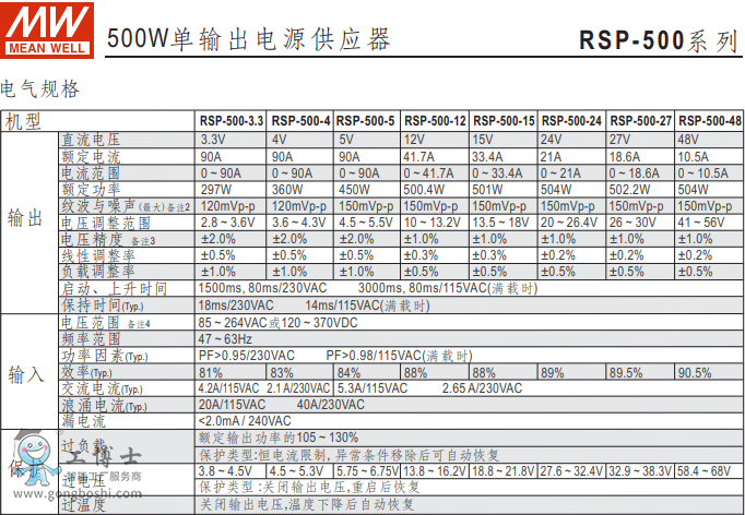 明緯開關電源RSP-5 0 0-15v系列