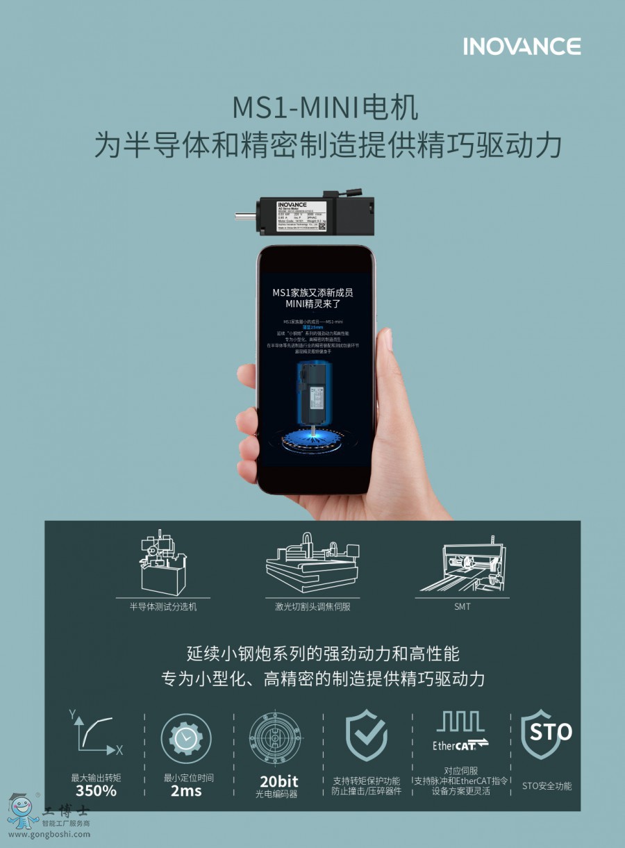MS1 系列伺服電機(jī)產(chǎn)品是匯川技術(shù)研制的新一代高性能伺服電機(jī)。MS1 電機(jī)配合伺服的易用性功能,調(diào)試更加方便,運(yùn)行更加平穩(wěn),定位時(shí)間更短,能更好的配合伺服驅(qū)動(dòng)器完成位置控制、速度控制和轉(zhuǎn)矩控制。同時(shí)MS1 電機(jī)擁有IP67 防護(hù)、高抗震設(shè)計(jì)等特點(diǎn),保障設(shè)備持續(xù)運(yùn)行,安全持久。