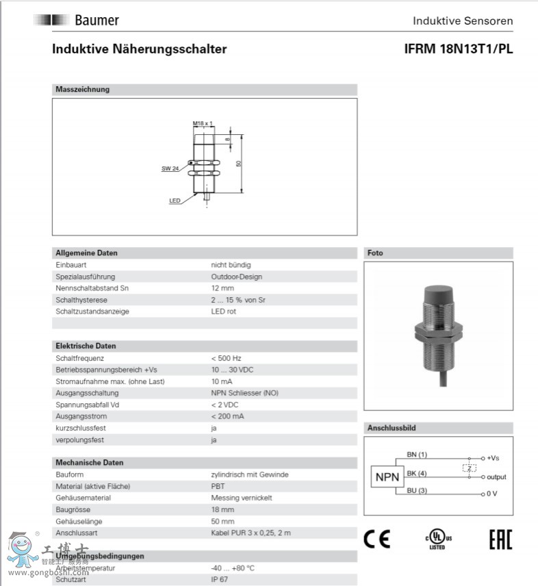 IFRM 18P13T1/S14L堡盟傳感器Baumer電感式接近開關(guān)傳感器