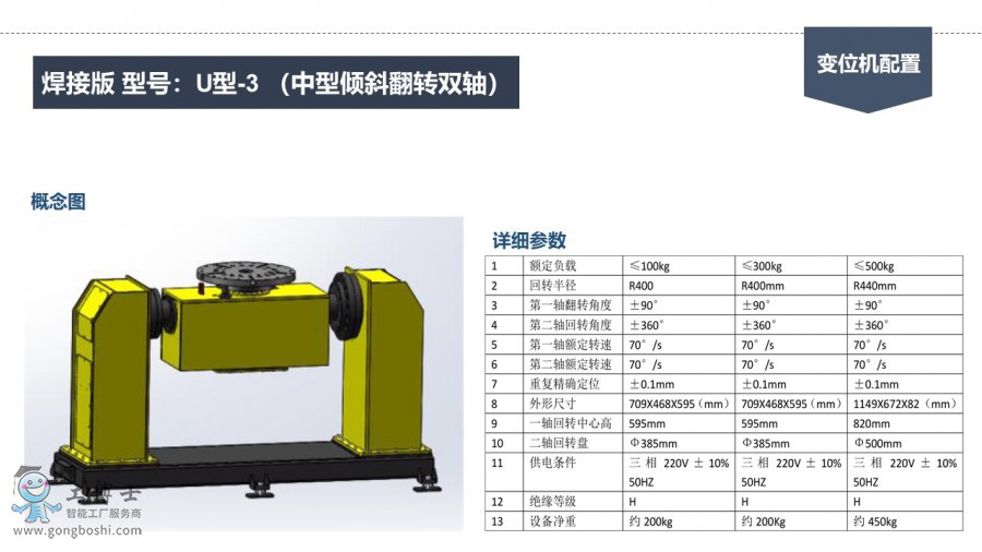 工博士 焊接版 型號:U型-3 (中型傾斜翻轉(zhuǎn)雙軸)變位機(jī)