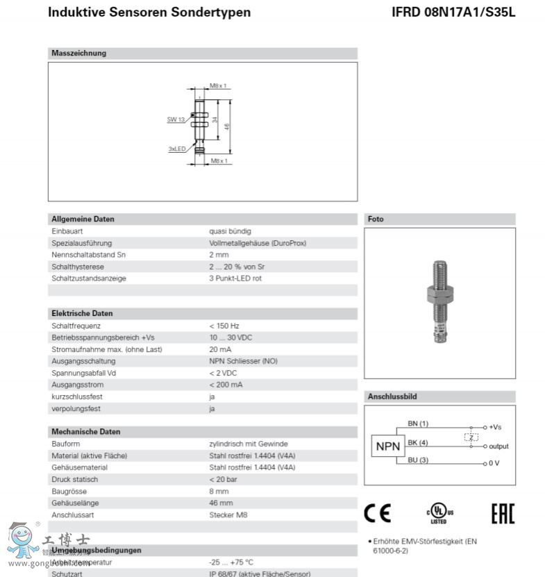 Baumer 堡盟IFRD 08P37A1/S35L開關傳感器電感式接近開關可開增票