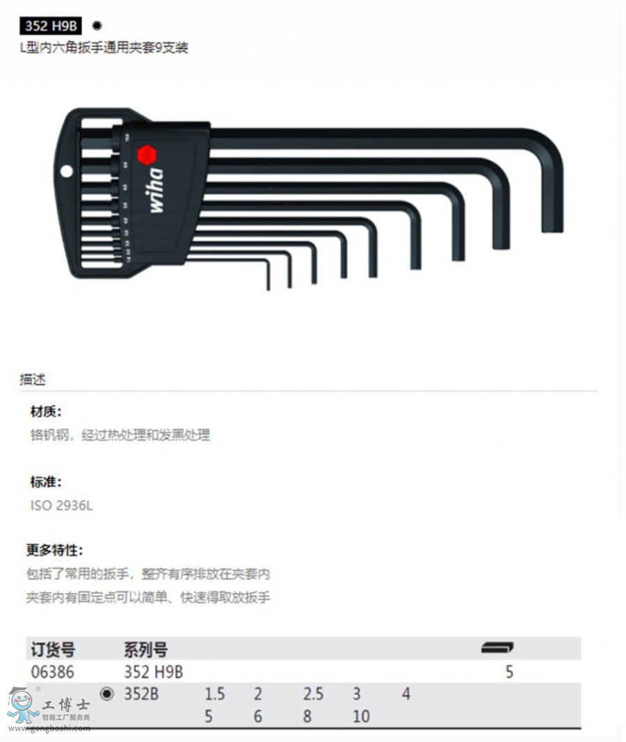 威漢 wiha 352H9B經典型內六角L扳手套裝9支裝德國原裝進口06386