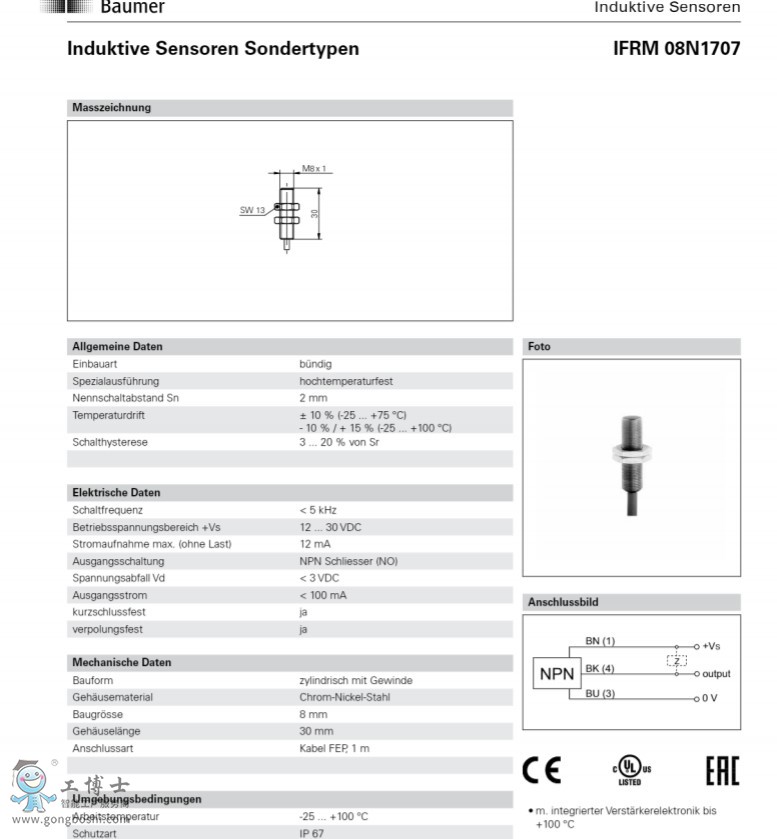 IFRM 08N1707堡盟傳感器Baumer電感式接近開關傳感器