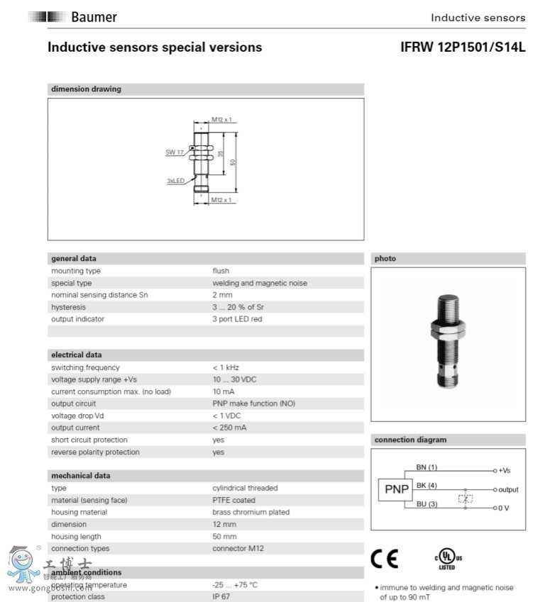 IFRP 12P1504/S14堡盟傳感器Baumer電感式接近開(kāi)關(guān)傳感器