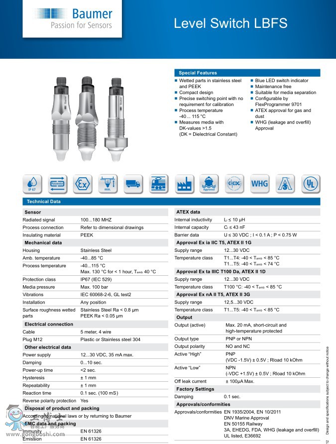 LBFS-03111.0Baumer 堡盟 液位計物位計開關傳感器現貨可開增票