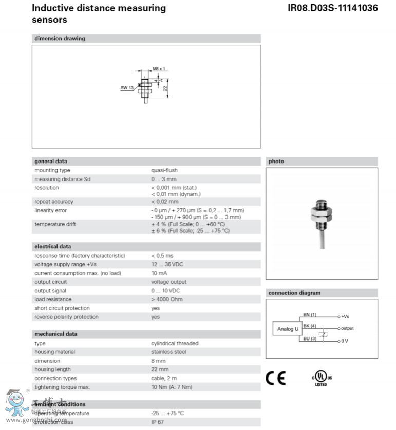 Baumer 堡盟IR08.D03S-11141036測距傳感器電感式接近開關可開增票