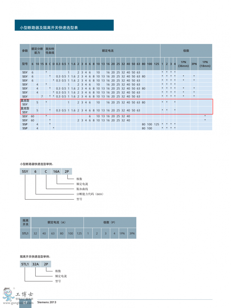 5SY 系列小型斷路器選型表