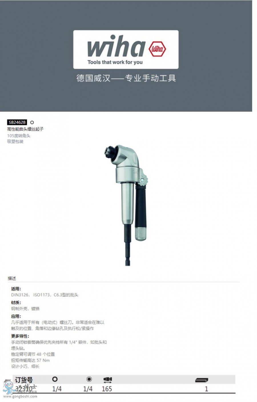 威漢 wiha SB24628快松式轉角器57Nm德國原裝進口32310