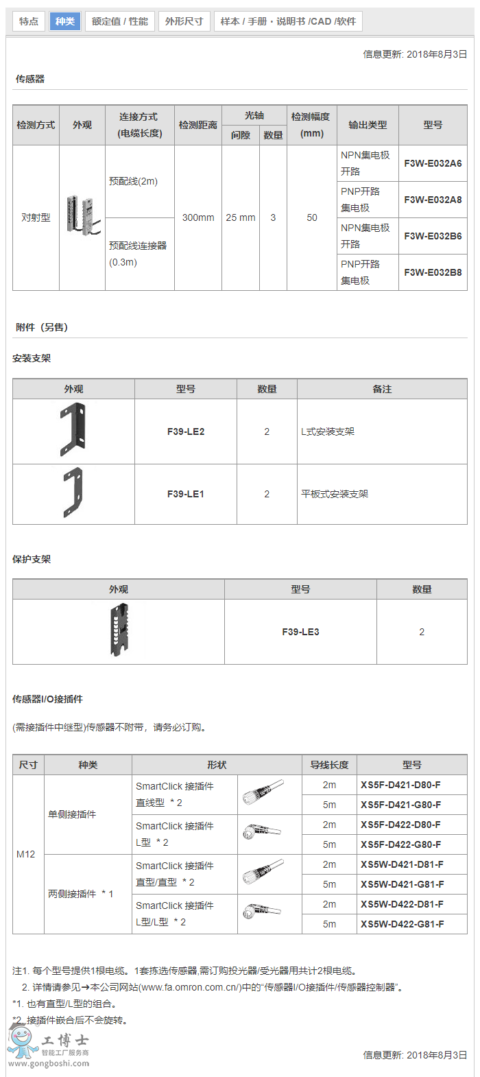 歐姆龍區域傳感器 F3W-E032B6 NPN集電極 開路