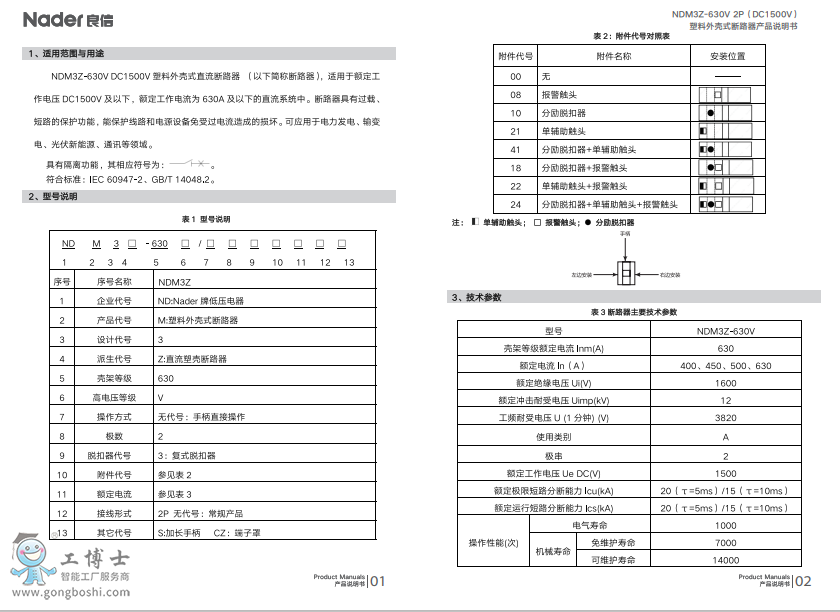 良信塑料外殼式斷路器 NDM3Z-630V 2P(DC1500V)