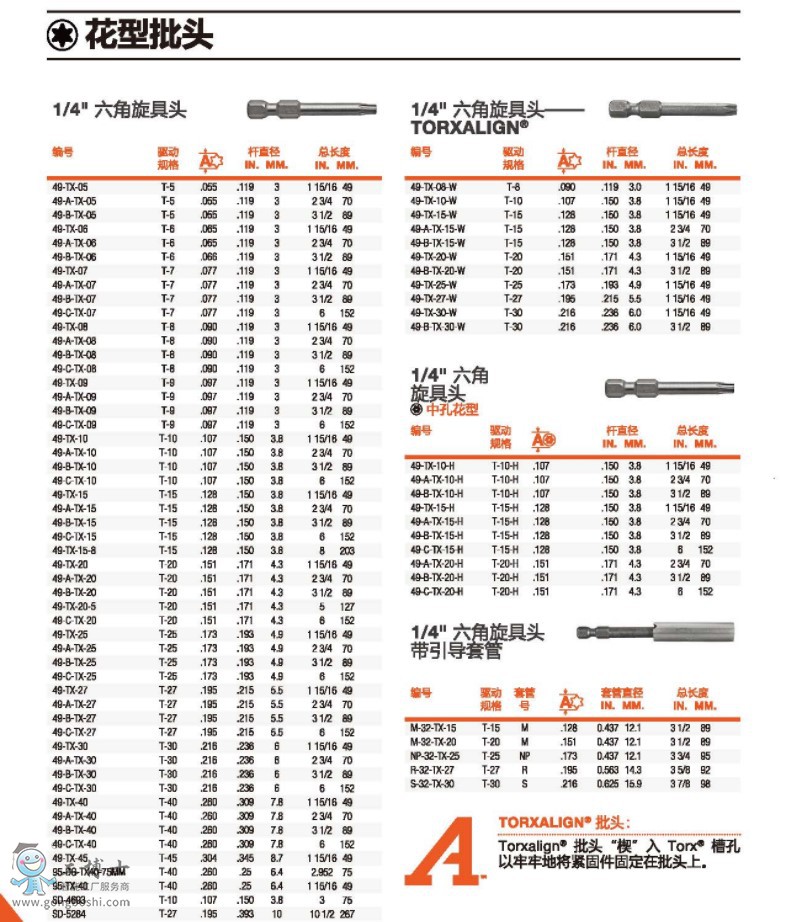 艾沛克斯APEX插入式和動力式旋具頭--花型批頭工具