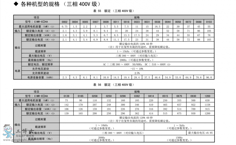各種機型的規格 (三相 400V 級)