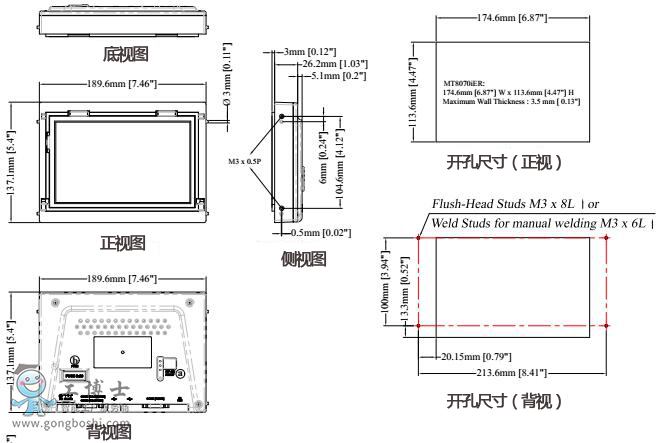 背鎖式人機界面能輕松安裝于嵌入式應用環境,固定支撐架可對應控制箱的板厚