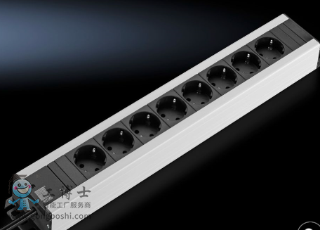 8 路插座板用于帶保護接地觸點的插頭型號(型號 F,CEE 7/4)。這類插座板可垂直安裝在機柜框架上或 482.6 mm (19") 型材的后面。在 482.6 mm (19") 型材上需要多于 2 U 的空間。插座設置成 45°,這樣也可以簡單使用角型插頭。連接電纜存放在插座板的一個接線嵌套內。接線嵌套配有一個單獨的蓋板和外部接線端子,以便單獨接地。