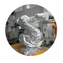 機器人防護服本身具有良好的耐高溫性能,可根據實際應用選擇合適的耐溫材料,可應用在各種高溫工況下工業機器人的防護。