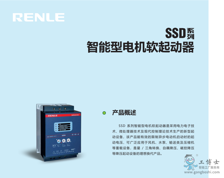 SSD系列智能型電機軟起動器是采用電力電子技術、微處理器技術及現代控制理論技術生產的起動設備,該產品能有效的限制異步電動機啟動時的起動電壓,可廣泛應用于風機、水泵、輸送類及壓縮機等重載設備,是星 / 三角轉換、自藕降壓、磁控降壓等降壓起動設備的理想換代產品