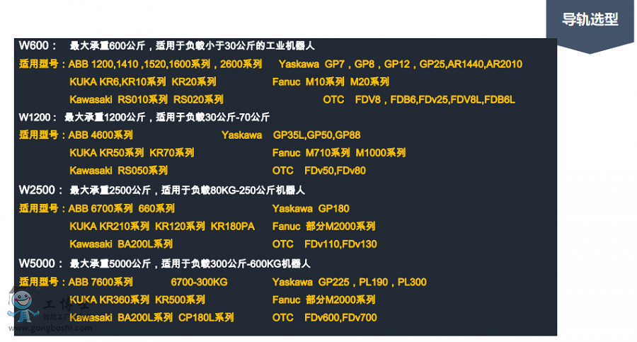 W2500:承重2500公斤,適用于負載80KG-250公斤機器人