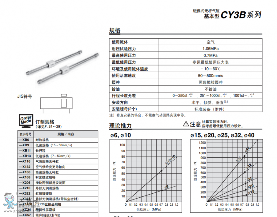SMC磁偶式無(wú)桿氣缸 CY3B系列 CY3B25-300