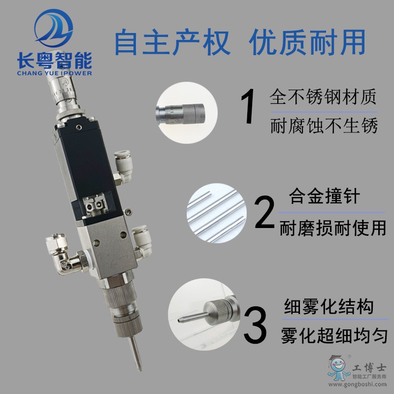CY3510精密小霧化型噴霧閥門是一款用于中低粘度溶劑型液體的霧化涂覆閥,以圓形方霧化形式進行噴涂,適應多種液態流體物,如三防漆、硅膠、環氧、UV膠、酒精、清洗液等表面涂覆材料。噴涂產品無飛濺,邊緣整齊。可以深入5mm狹窄間隙噴涂,針嘴設計,易更換,霧化沒有殘留、易清洗、易調節。