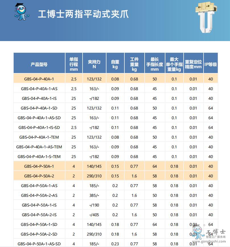 工博士GBS自主兩指平動式夾爪GBS-04-P-50A-2