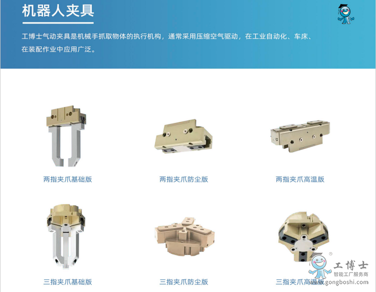 工博士氣動夾具是機械手抓取物體的執行機構,通常采用壓縮空氣驅動,在工業自動化、車床、