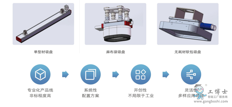 工博士***真空吸盤夾具致力于真空搬運(yùn)技術(shù)在堆垛、拆垛、搬運(yùn)、裝箱等不同應(yīng)用領(lǐng)域上,為多種行業(yè)提供**定制化真空搬運(yùn)專業(yè)解決方案,實(shí)現(xiàn)**的工業(yè)自動化。