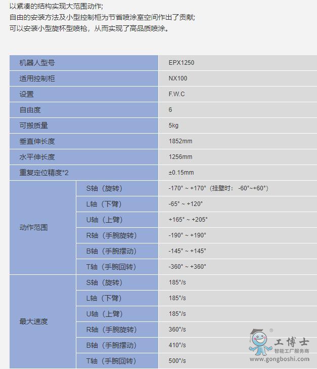 安川機器人 -機器人MPX MPO EPX 系列-EPX1250 噴涂專用 噴涂機器人