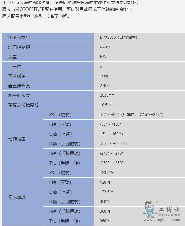 安川機器人 -機器人MPX MPO EPX 系列-EPX205(Lemma) 噴涂專用 噴涂機器人