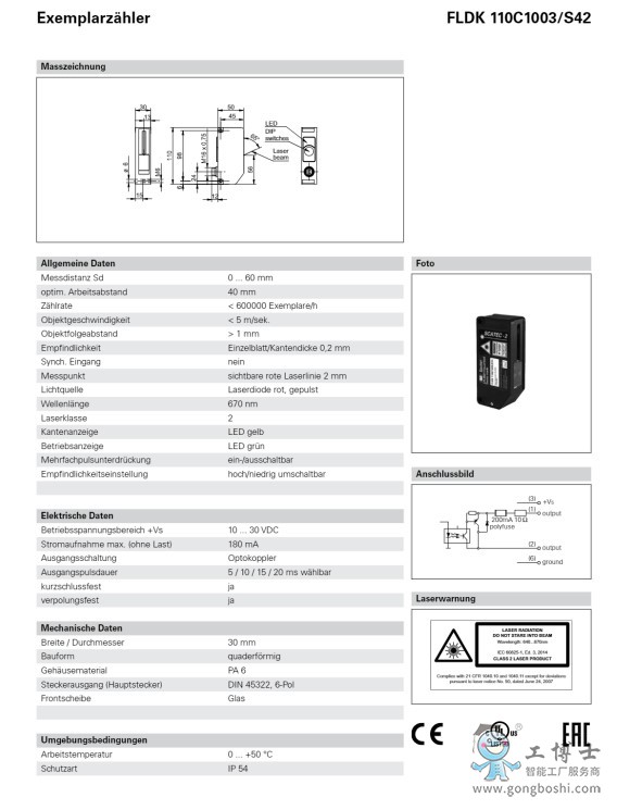 FLDK 110G1010/S14 Baumer 堡盟 測量傳感器 拷貝計數器
