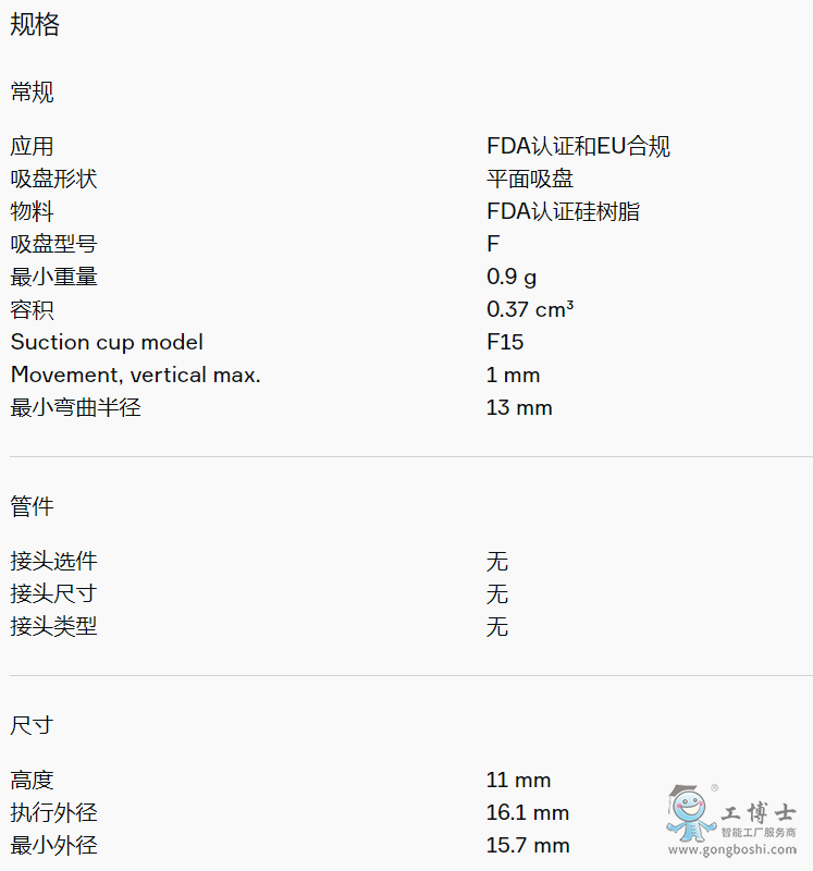 PIAB派亞博0200263真空吸盤F15 硅膠食品直接接觸材料