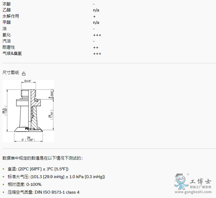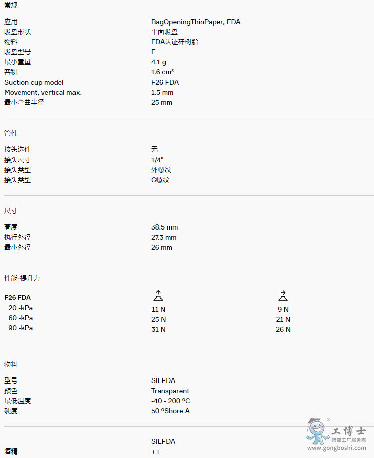 Piab派亞博 9914238吸盤 F26 硅膠食品直接接觸材料, G1/4“ 外螺紋