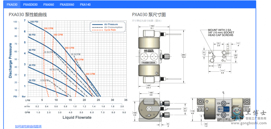 PXA系列泵性能和尺寸: