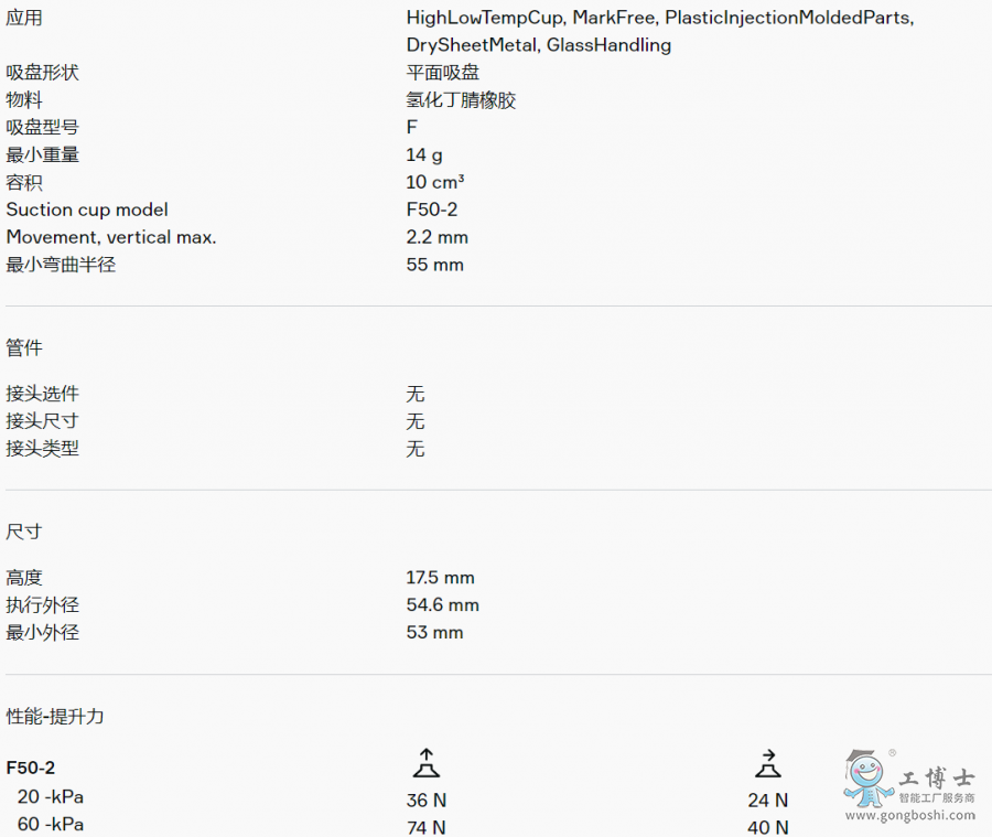 適用于硬紙板、鈑金、玻璃和多孔材料等平坦工件。該吸盤采用夾板結構,不僅可防止工件被吸入吸盤內部而導致變形,而且在提升力平行作用于工件表面時還能增加摩擦力。產品穩定性好,在工作期間幾乎不會發生任何偏移。