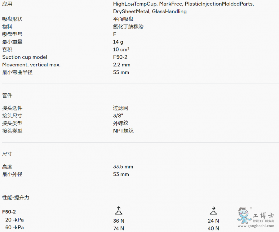 PIAB派亞博 9909460 平面吸盤 F50-2